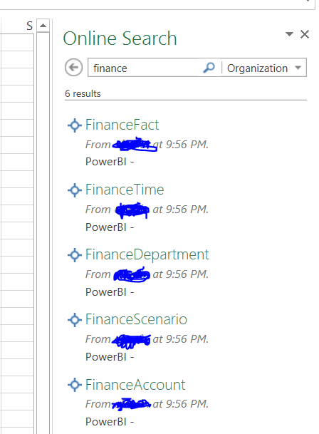 In order to find your tables, go to Power Query ribbon and click Online Search (note, it takes a few seconds for all the sync activities to run their course so give it a minute)