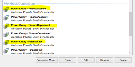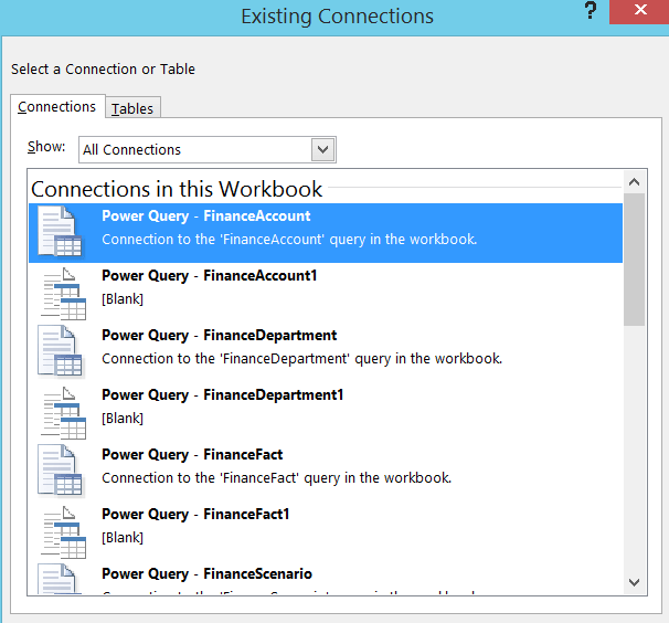 Now you can fire up the Power Pivot window, click on Existing connections, scroll to the bottom of the list and use our Power Query connections to load data in Power Pivot