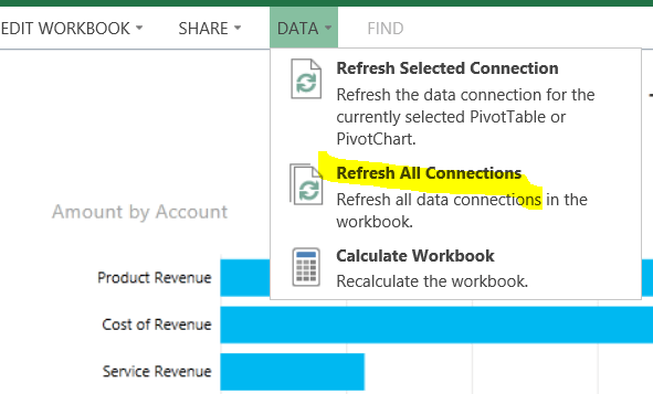 If you try to refresh your workbook in a browser and then use Refresh All Connection options there