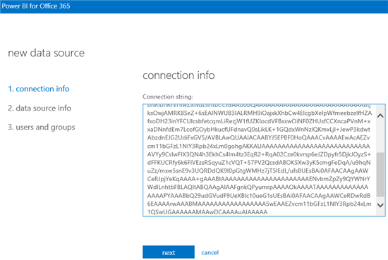 Well, today Microsoft has released a new version of the Gateway that in addition to SQL Server and Oracle also supports Power Query as a data source. In this version, only Power Queries against SQL Server an Oracle databases are supported, but Microsoft states that additional data sources will be supported in future releases. I think it’s a little clunky that one needs to copy a connection info from Excel as you can see in the image below