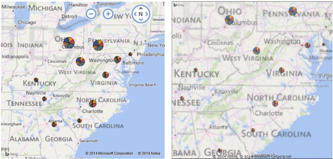 The mapping features is supported in HTML5 now as well fully drillable and interactive (HTML5 on the left and Silverlight on the right)