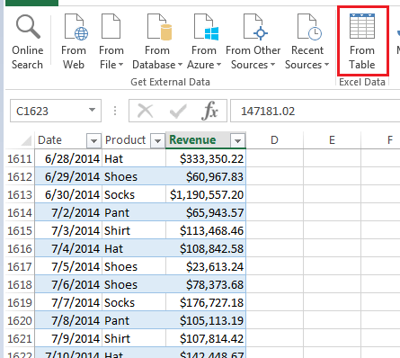 For the purposes on the tutorial let’s load Sales data from an excel table (this could be from a database). Highlight Sales table, click on the ribbon -> Power Query -> From Table to create a query. Load and Close the query