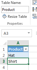 To change the filter, change the Product table in excel to Hat and Shirt