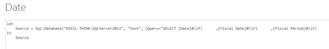 Source = Sql.Database(“192.168.23.81”, “dbo.name”, [Query= Excel.CurrentWorkbook(){[Name=”Infodesk”]}[Content][Script]{0}])