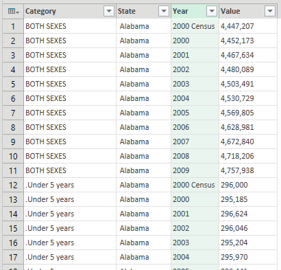 For the tutorial I downloaded data for Alabama, Alaska and Arizona into a folder. Open the CSV files, and notice that all of them have the same layout. In this tutorial we are going to: