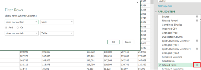 - From the APPLIED STEPS panel on the right, click on the gear next to Filtered Rows1