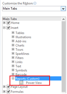 - This adds Power View to the New Group (Custom) tab