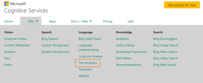 Go to this link (https://www.microsoft.com/cognitive-services/en-us/apis ) and then click on APIs -> Text Analytics