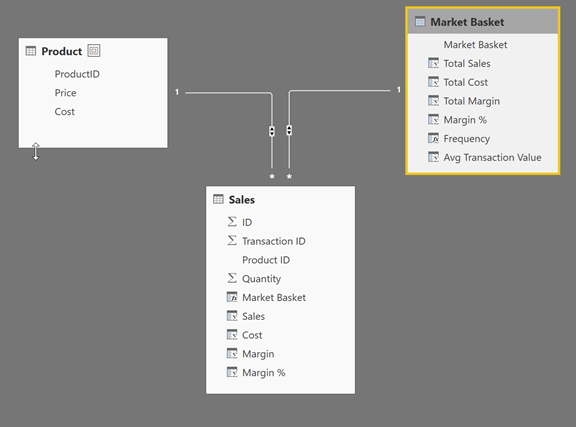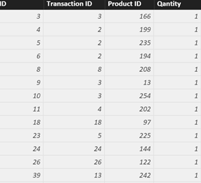 Now our Sales table will look like the image below (please note that records with the same Transaction ID have the same value for the Market Basket)