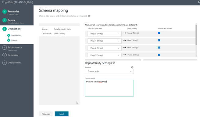 Now we can review how our text file maps to the SQL Table and click Next (you can also change the Repeatability Settings from None to Custom Script and type in your SQL to delete the contents of the table if you intend to overwrite it with every load)
