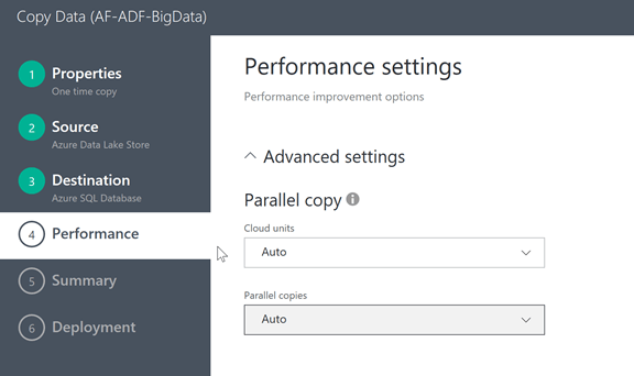 Leave the Performance Unites at Auto in the next section and click Next