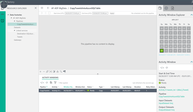 You can click on the “Click here to monitor copy pipeline” to see the results