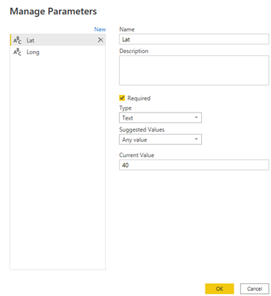 Then you need to go to the Source step of our query and replace the hardcoded coordinates with our parameters (please see the highlighted parts below)